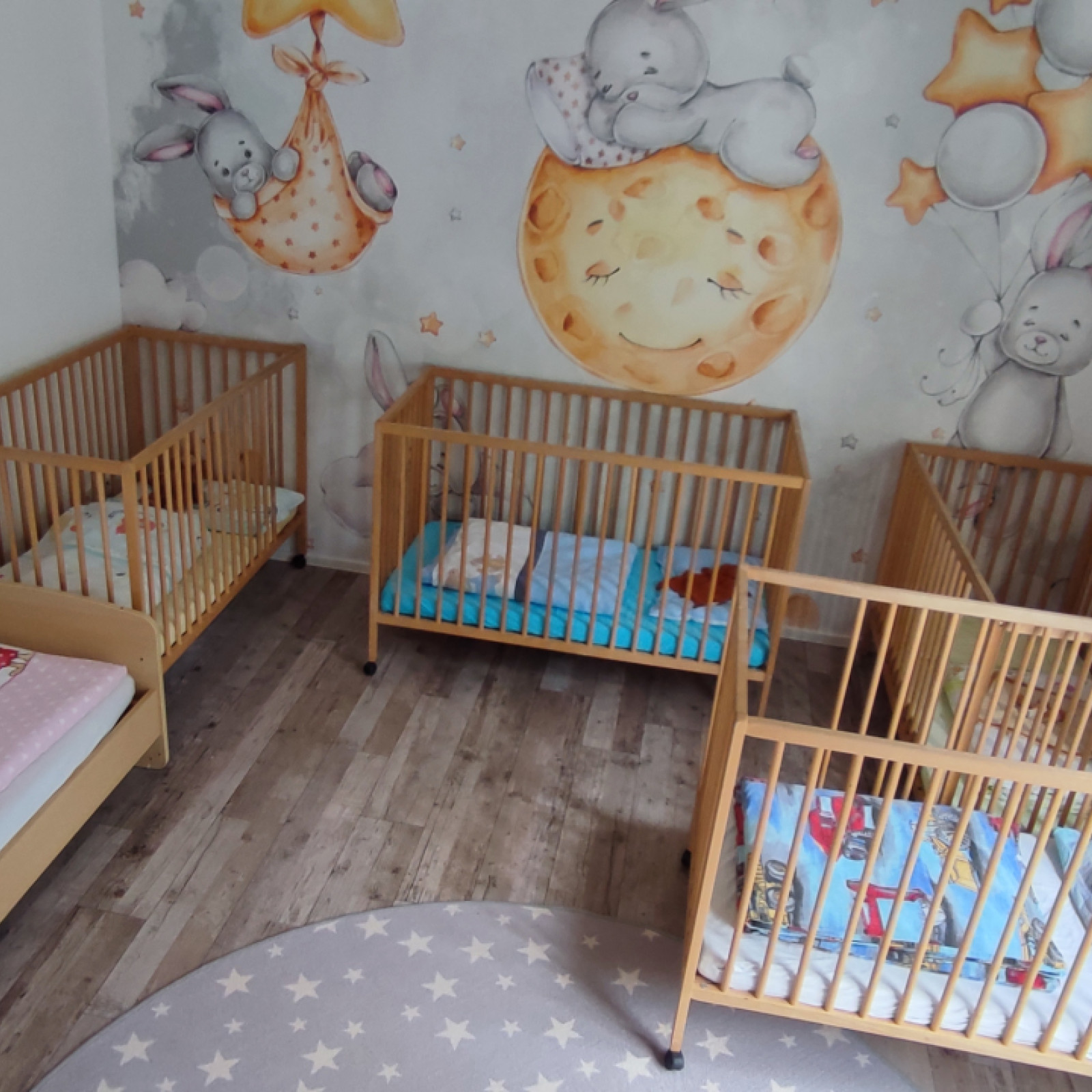 einen separaten Schlafraum sowie ein Wickelbereich. Für die Kinder gibt es 4 Gitterbetten